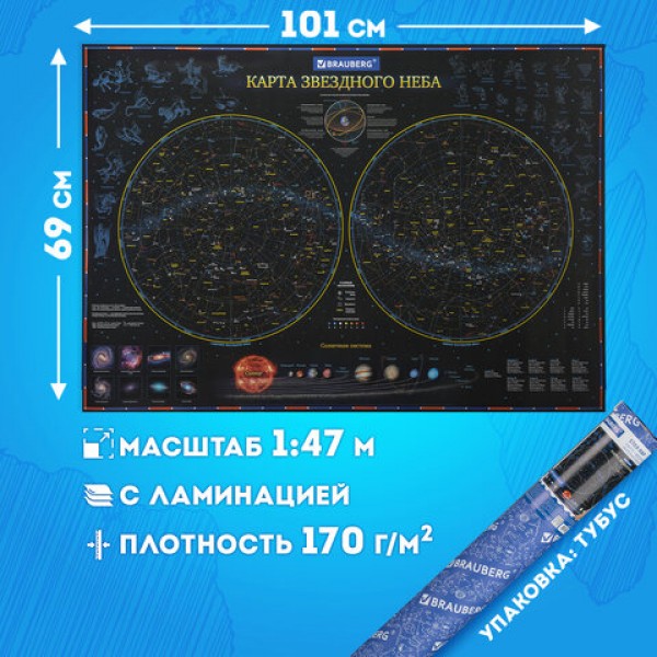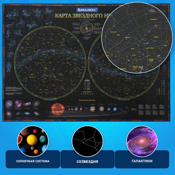 На карте звездного неба и планет BRAUBERG можно рассмотреть солнечную систему, далекие галактики и созвездия.