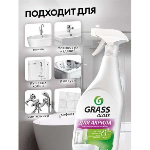 Средство для чистки акриловых ванн и душевых 600 мл GRASS GLOSS ДЛЯ АКРИЛА, распылитель, 126059