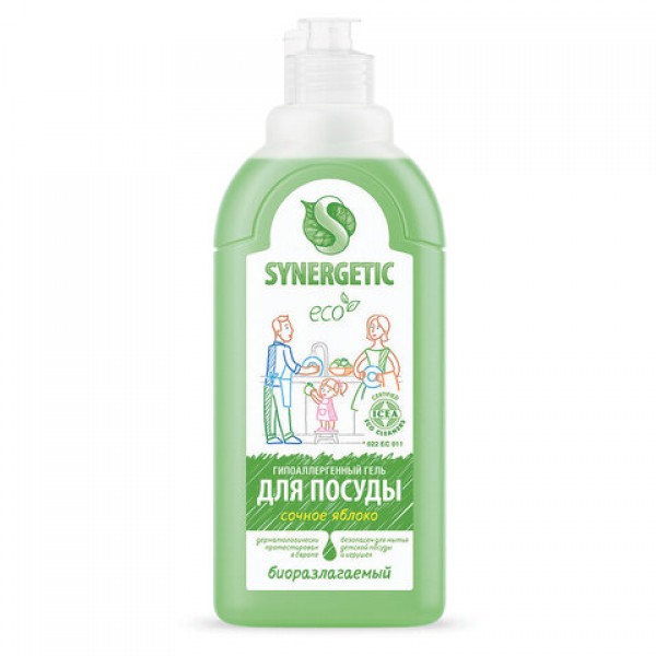Гель для мытья посуды антибактериальный 500 мл, SYNERGETIC 'Яблоко', 103052