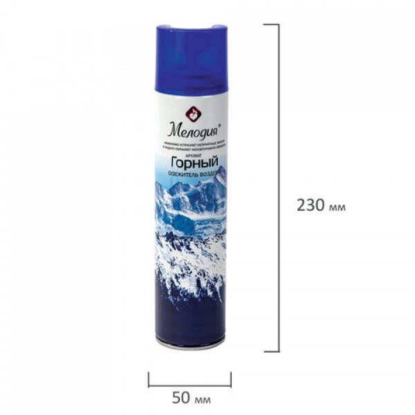 Освежитель воздуха МЕЛОДИЯ "Горный" быстро и эффективно устраняет неприятные запахи и освежает воздух в жилых и бытовых помещениях. Имеет приятный стойкий аромат, который надолго наполнит помещение свежестью.