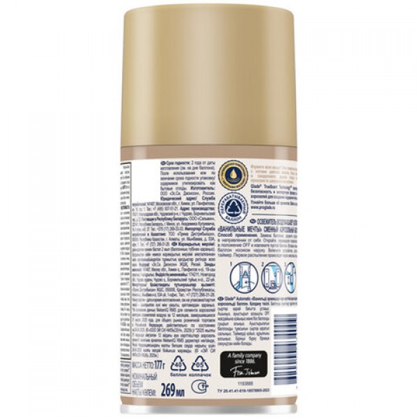 Сменный баллон 269 мл, GLADE 'Ванильные мечты' для автоматических освежителей, 864987