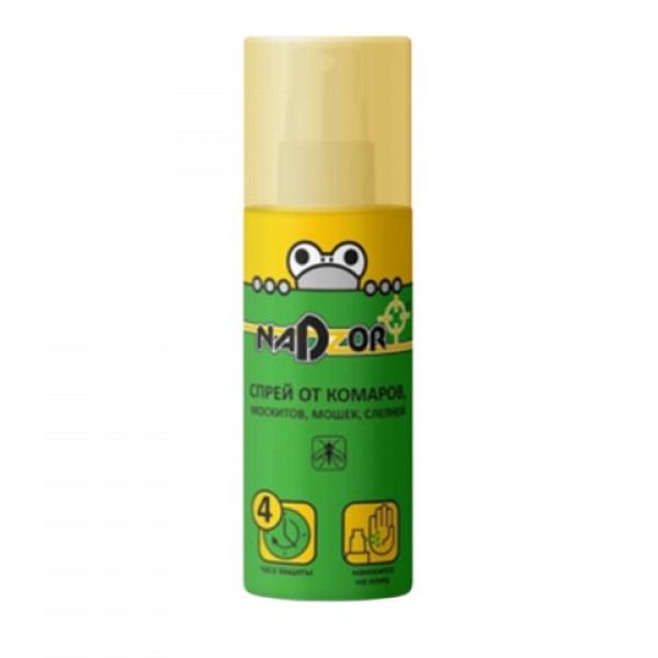Спрей NADZOR защищает от комаров, москитов, мошек и слепней.