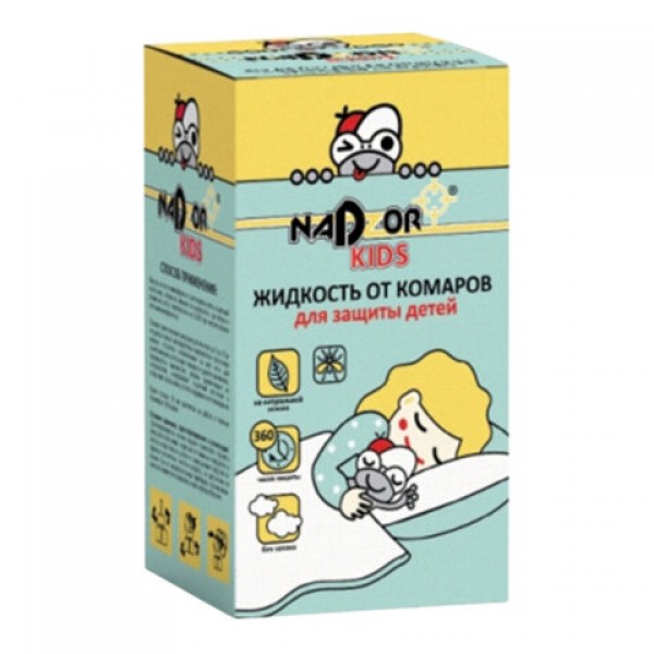 Жидкость от комаров NADZOR KIDS без запаха обеспечивает спокойный сон детей и взрослых. Натуральная основа гарантирует безопасную защиту детских комнат.