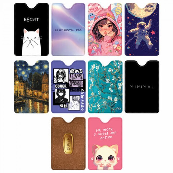 Обложка-карман для карт и пропусков с вырезом 'Cool Mix', 95х65 мм, 10 дизайнов ассорти, ПВХ, STAFF, 238878