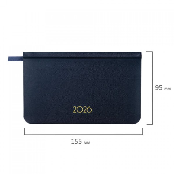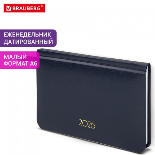 Еженедельник датированный 2026, МАЛЫЙ ФОРМАТ, 95х155 мм, А6, BRAUBERG 'Select', балакрон, темно-синий, 117192