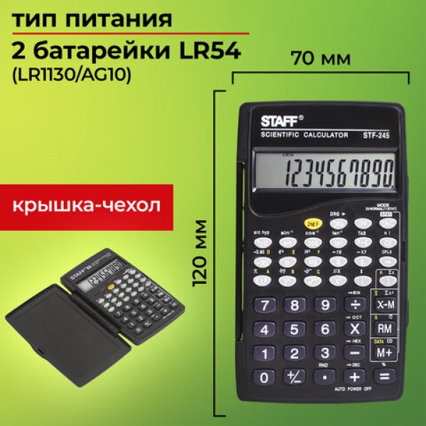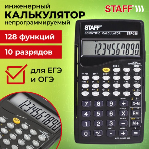 Калькулятор инженерный STAFF STF-245, КОМПАКТНЫЙ (120х70 мм), 128 функций, 10 разрядов, 250194