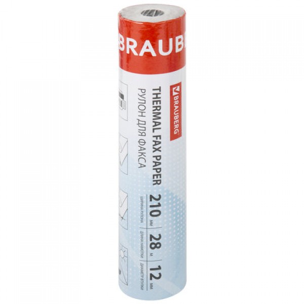 Рулон для факса 210 мм (диаметр 45 мм, длина 28 м, втулка 12 мм), BRAUBERG, 110149