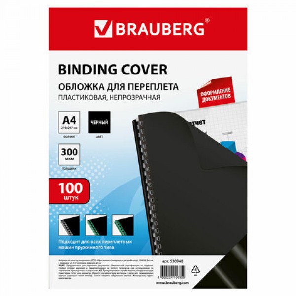 Пластиковые обложки BRAUBERG придадут документам эстетичный внешний вид и защитят от повреждений. Предназначены для переплета документов брошюровщиком с помощью пластиковых и металлических пружин.