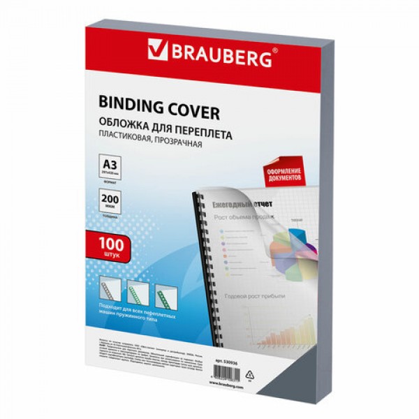Пластиковые обложки BRAUBERG придадут документам эстетичный внешний вид и защитят от повреждений. Предназначены для переплета документов брошюровщиком с помощью пластиковых и металлических пружин.