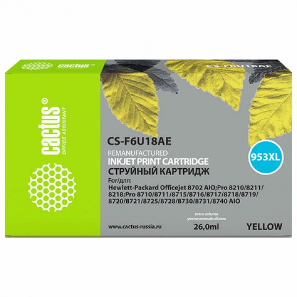 Картридж струйный CACTUS (CS-F6U18AE) для HP OfficeJet Pro 7740/8210/8218/8710/8715, желтый