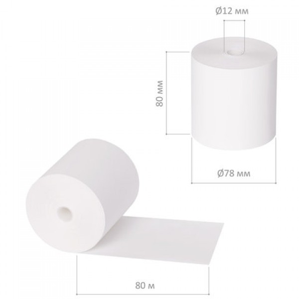 Чековая лента ТЕРМОБУМАГА 80 мм (диаметр 78 мм, длина 80 м, втулка 12 мм) КОМПЛЕКТ 6 шт., BRAUBERG, 110895