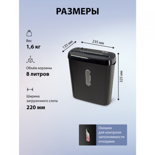 | Возможности уничтожения | бумаги А4 (80 г/м2) |