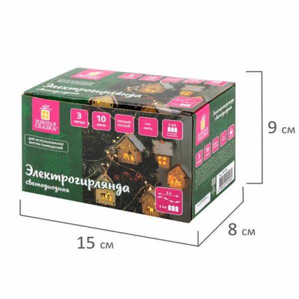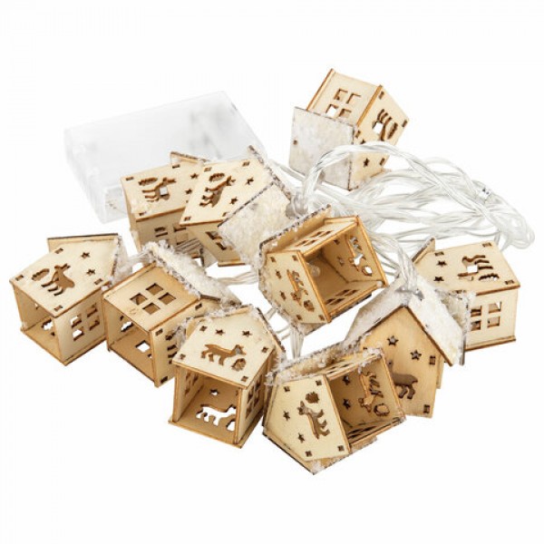 Электрогирлянда-нить комнатная 'Домики дерево', 2 м, 10 LED, теплый белый, на батарейках, ЗОЛОТАЯ СКАЗКА, 591728