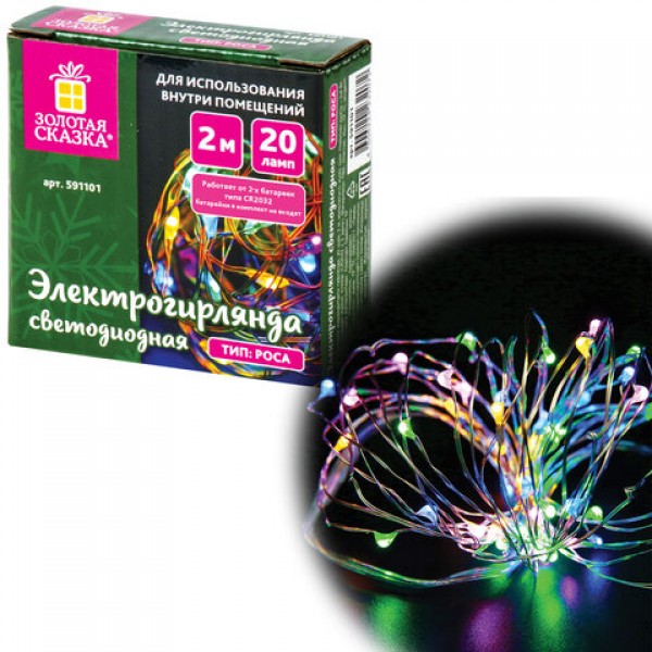 Электрогирлянда-нить комнатная 'Роса' 2 м, 20 LED, мультицветная, на батарейках, ЗОЛОТАЯ СКАЗКА, 591101