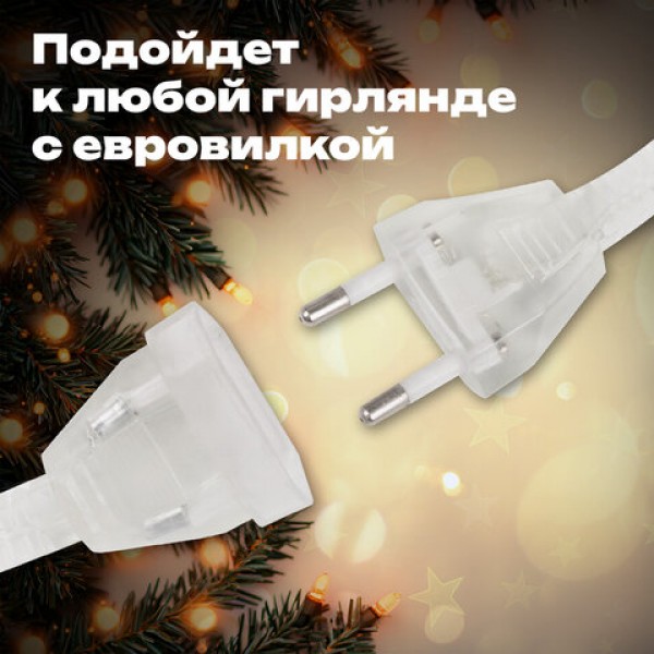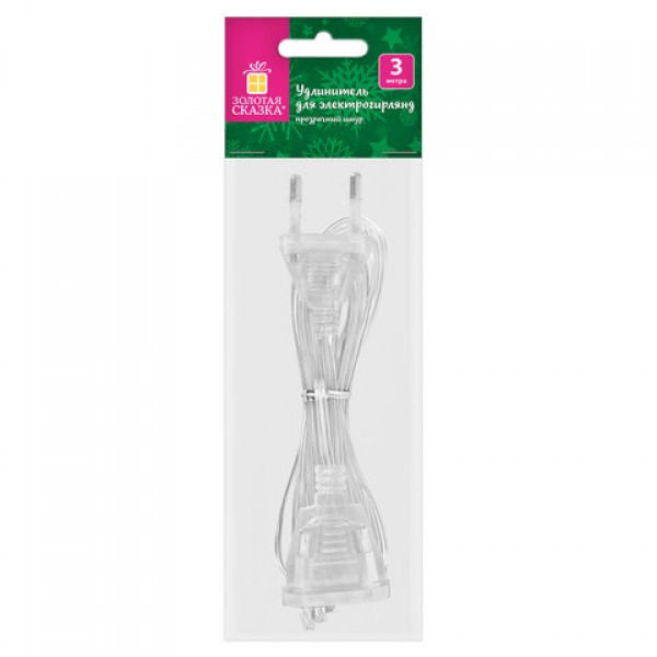 Удлинитель для электрогирлянд ЗОЛОТАЯ СКАЗКА – отличное решение для увеличения длины гирлянды. Удлинитель универсален за счет прозрачного цвета и впишется в любой праздничный интерьер.