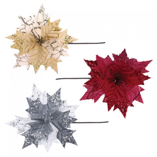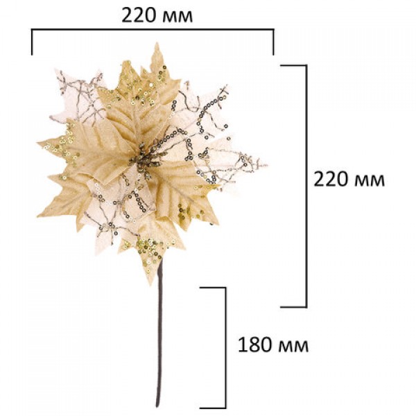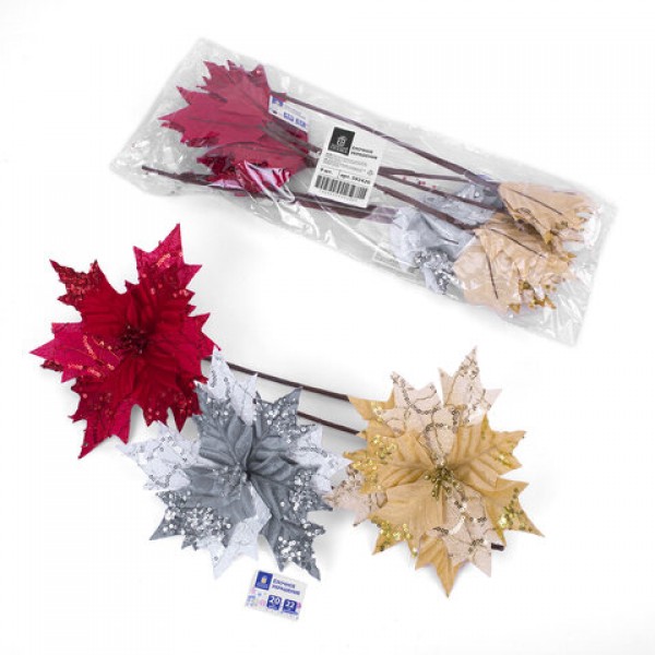 Украшение елочное 1 шт., 'Цветок', диаметр 22 см, длина 20 см, ассорти 3 дизайна, ЗОЛОТАЯ СКАЗКА, 592420
