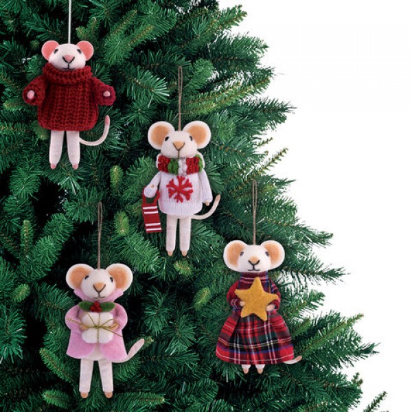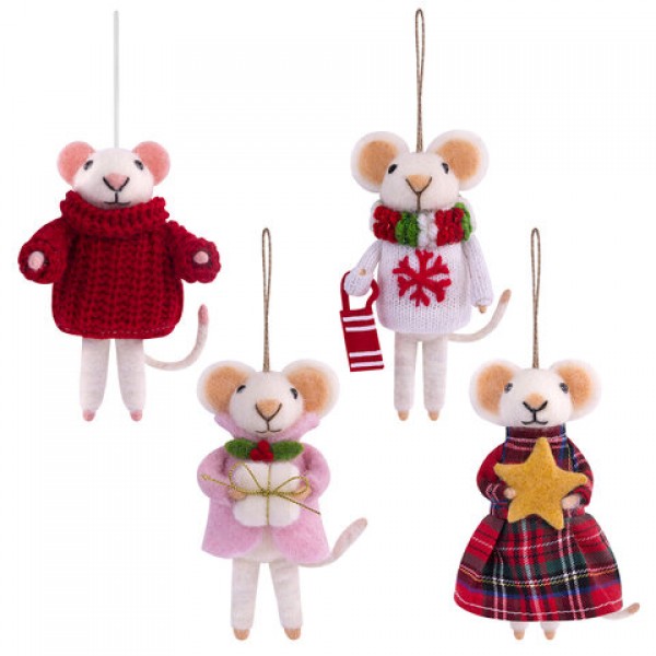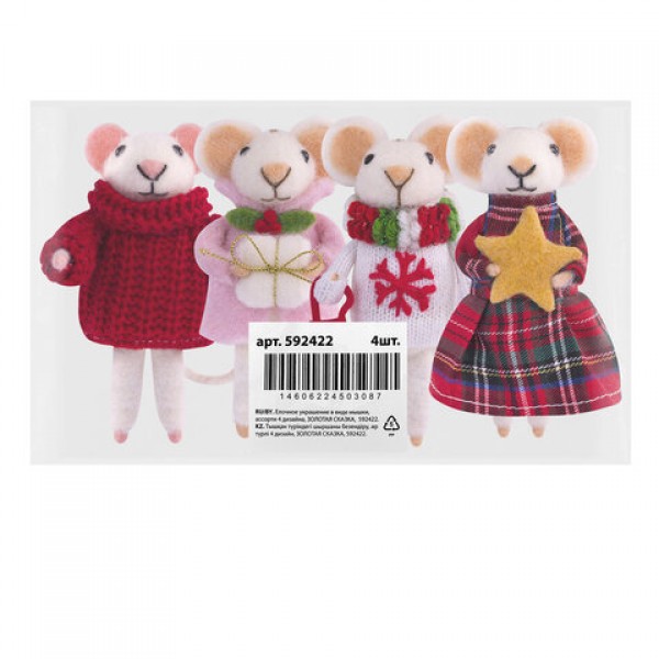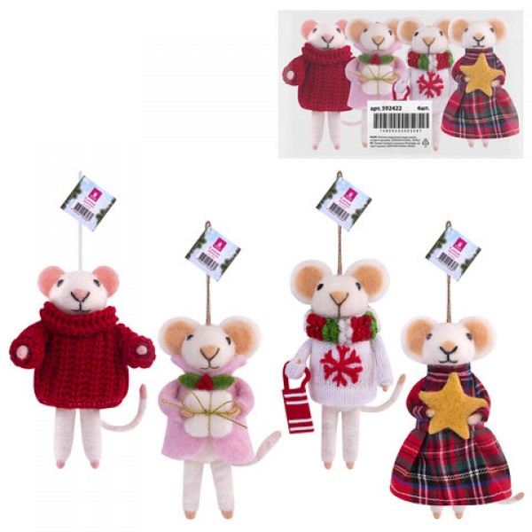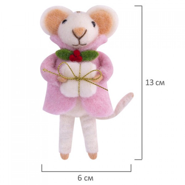 Украшение ёлочное (1 шт.) 'Мышка', 6х5х13 см, фетр, хлопок, ассорти 4 дизайна, ЗОЛОТАЯ СКАЗКА, 592422