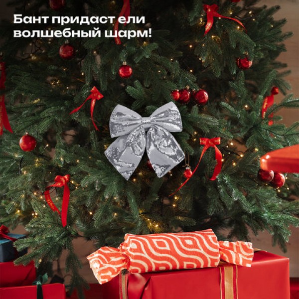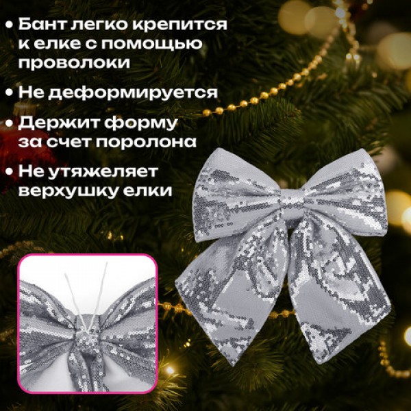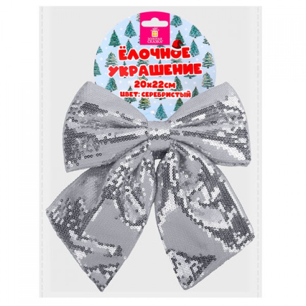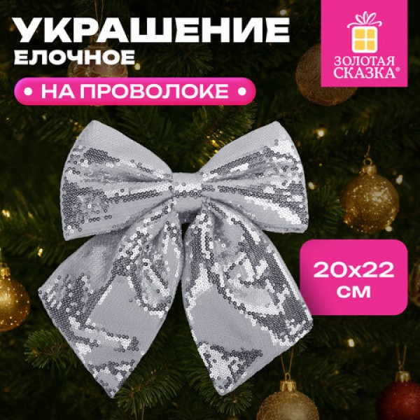 Украшение ёлочное 20х22 см, 'Бант с пайетками', полиэстер, серебро, ЗОЛОТАЯ СКАЗКА, 592481