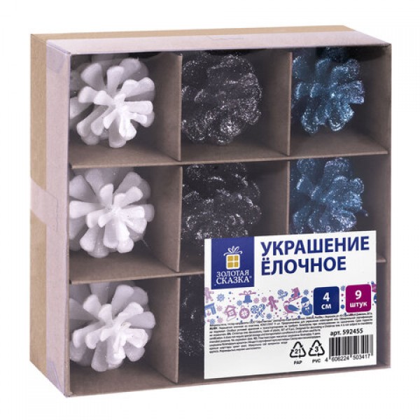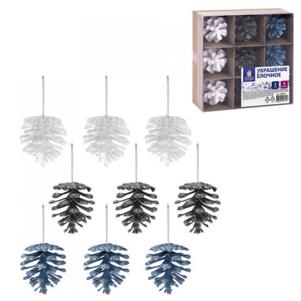Украшение ёлочное 9 шт., 4 см, 'Шишки', пластик, ЗОЛОТАЯ СКАЗКА, 592455