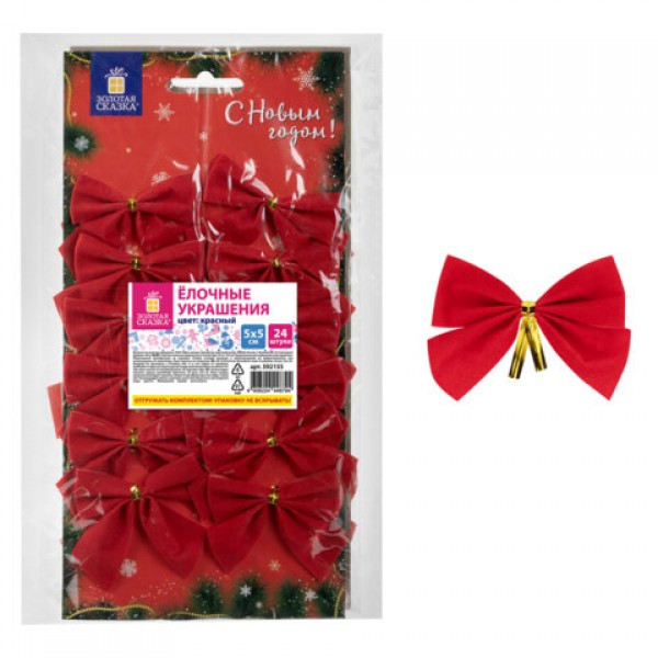 Украшение ёлочное 'Бантики', КОМПЛЕКТ 24 шт., 5х5 см, красные, ЗОЛОТАЯ СКАЗКА, 592155