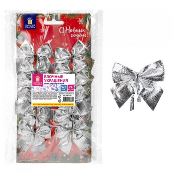 Украшение ёлочное 'Бантики', КОМПЛЕКТ 24 шт., 5х5 см, серебристые, ЗОЛОТАЯ СКАЗКА, 592156