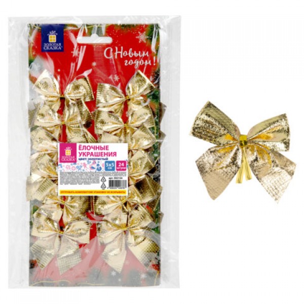 Украшение ёлочное 'Бантики', КОМПЛЕКТ 24 шт., 5х5 см, золотистые, ЗОЛОТАЯ СКАЗКА, 592154