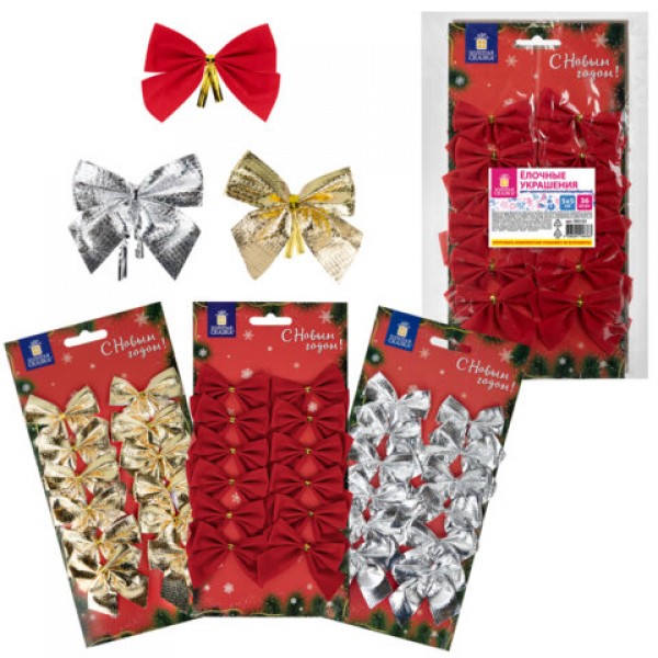 Украшение ёлочное 'Бантики', НАБОР 36 шт. (3 цвета по 12 шт.), 5x5 см, ЗОЛОТАЯ СКАЗКА, 592152