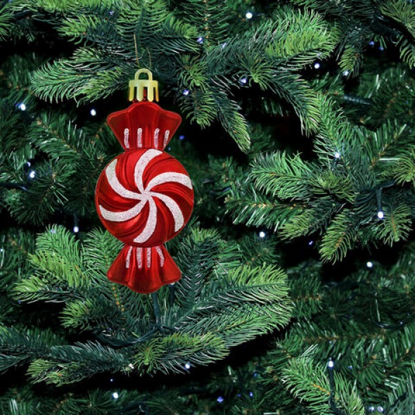 Оригинальным решением украсить новогоднюю ель станут фигурные елочные игрушки. Украшения, выполненные в форме конфет, имеют петлю для подвешивания.