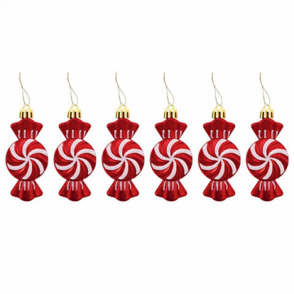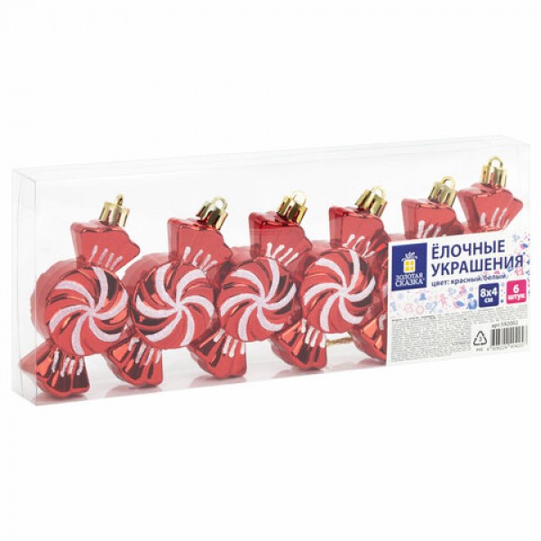 Украшение ёлочное 'Конфетки', 6 шт., 8х4 см, пластик, цвет: красный/белый, ЗОЛОТАЯ СКАЗКА, 592002