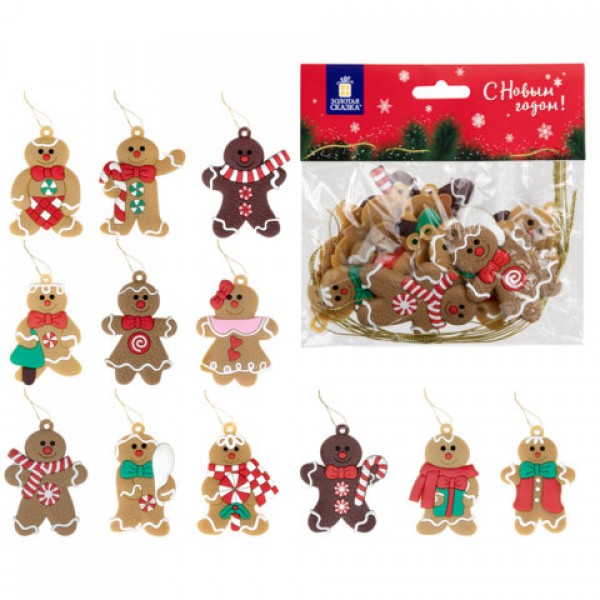 Украшение ёлочное 'Пряничные человечки', 12 шт., 7 см, ЗОЛОТАЯ СКАЗКА, 592146