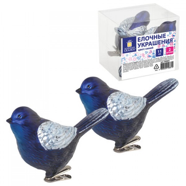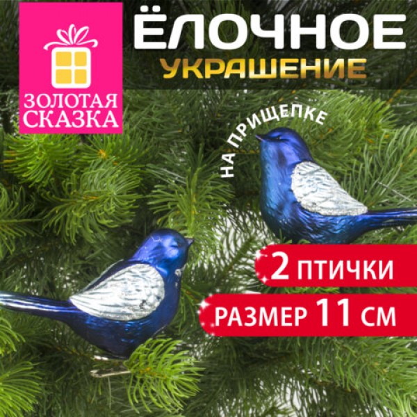 Украшение ёлочное 'Птички' 2 шт., 11 см, пластик, цвет: синий/серебристый, ЗОЛОТАЯ СКАЗКА, 590894