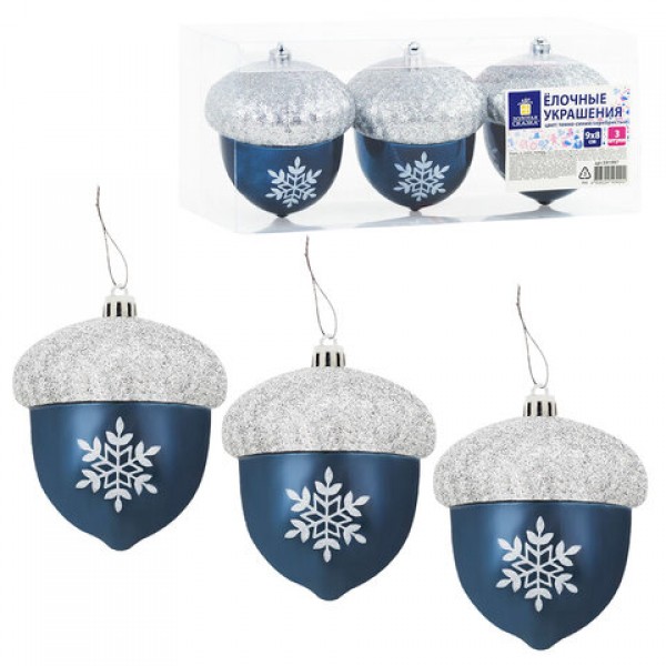 Украшение ёлочное 'Желуди' 3 шт., 9х8 см, пластик, цвет: темно-синий / серебро, ЗОЛОТАЯ СКАЗКА, 591997