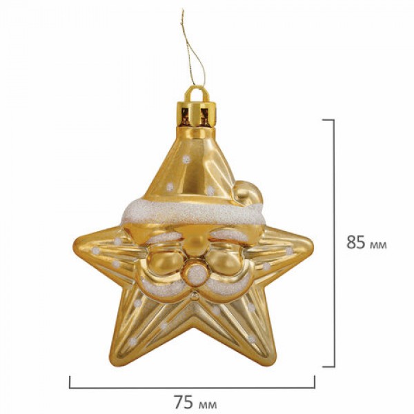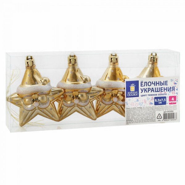Украшение ёлочное 'Звезды с усами', 4 шт., 8,5х7,5 см, пластик, золотистые, ЗОЛОТАЯ СКАЗКА, 592000