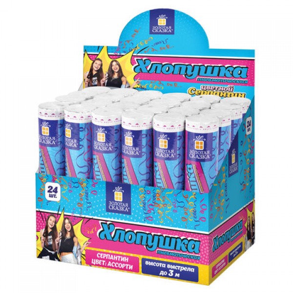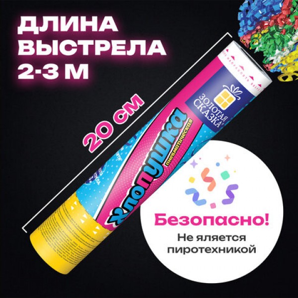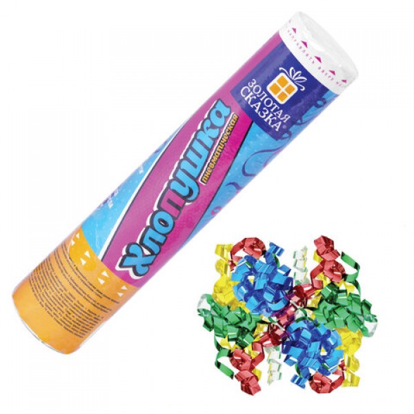 Хлопушка пневматическая 20 см 'Party Popper', фольга, серпантин, ассорти, ЗОЛОТАЯ СКАЗКА, 592464