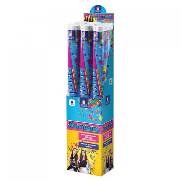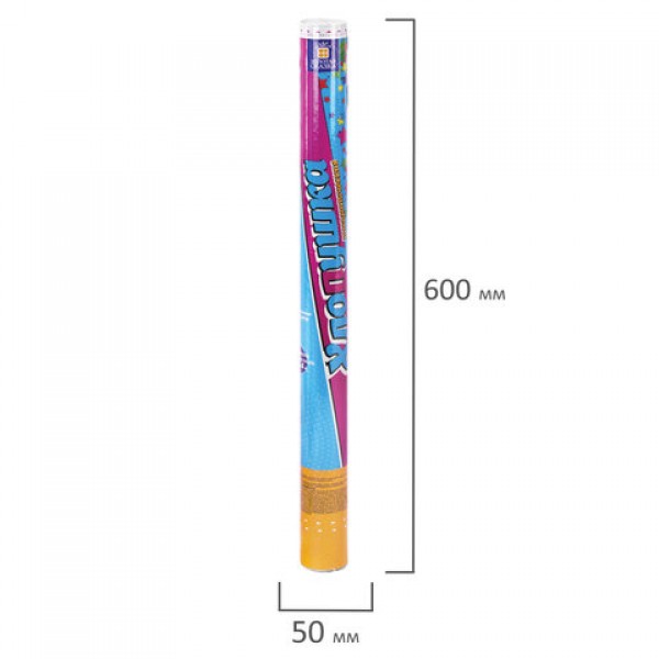 Пневматическая хлопушка не является пиротехникой и работает на основе энергии сжатого воздуха. Конфетти и серпантин ярких цветов можно использовать в помещении или на улице. Хлопушка подойдет для праздников, концертов, реквизита для фотосессии.