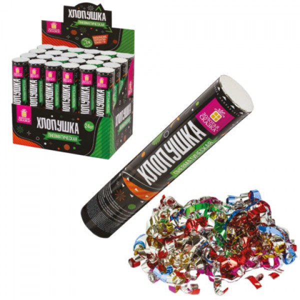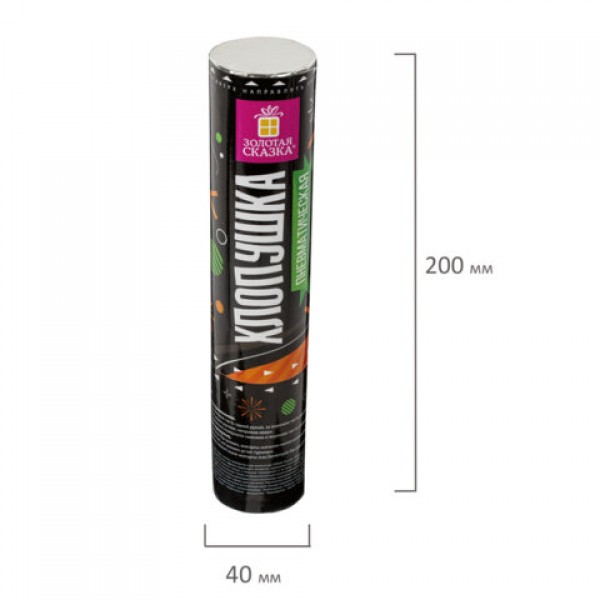 Пневматическая хлопушка ЗОЛОТАЯ СКАЗКА предназначена для создания отличного настроения и атмосферы настоящего веселья на любом празднике - новогодней вечеринке, торжестве в честь Дня Рождения, выпускном, корпоративе или любом другом праздничном событии.