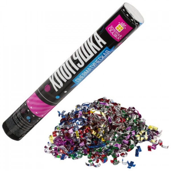 Пневматическая хлопушка ЗОЛОТАЯ СКАЗКА предназначена для создания отличного настроения и атмосферы настоящего веселья на любом празднике - новогодней вечеринке, торжестве в честь Дня Рождения, выпускном, корпоративе или любом другом праздничном событии.