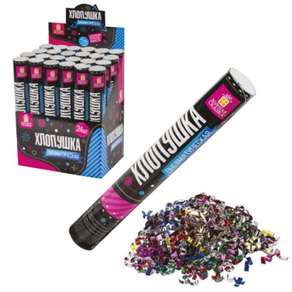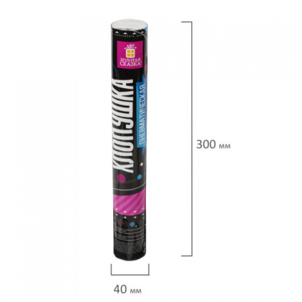 Хлопушка пневматическая ЗОЛОТАЯ СКАЗКА 30 см, фольга, серпантин, ассорти, 591474