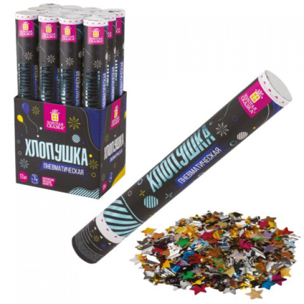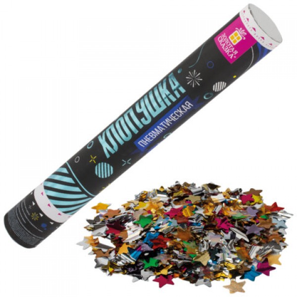 Хлопушка пневматическая ЗОЛОТАЯ СКАЗКА 40 см, фольга, звезды, ассорти, 591480