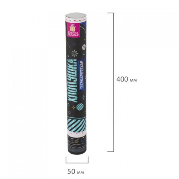 Пневматическая хлопушка ЗОЛОТАЯ СКАЗКА предназначена для создания отличного настроения и атмосферы настоящего веселья на любом празднике - новогодней вечеринке, торжестве в честь Дня Рождения, выпускном, корпоративе или любом другом праздничном событии.