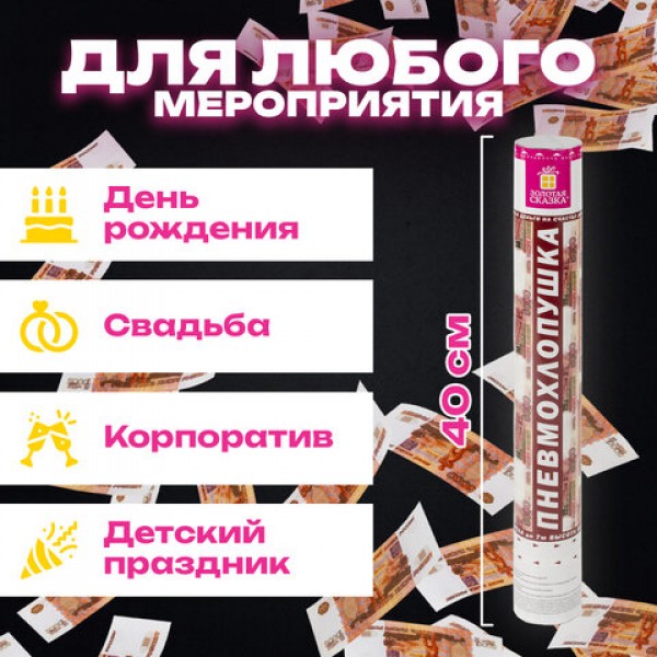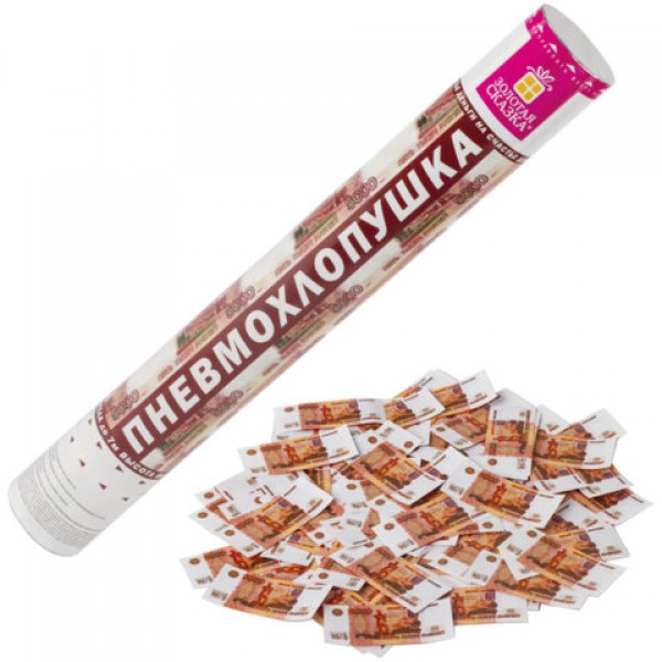 Хлопушка пневматическая ЗОЛОТАЯ СКАЗКА '5000 рублей' 40см, наполнитель 'купюры', 591479