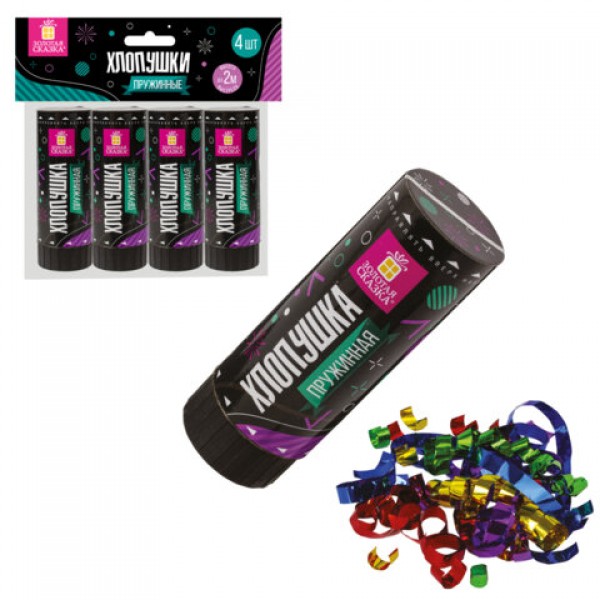 Хлопушка пружинная ЗОЛОТАЯ СКАЗКА НАБОР 4 шт., 11 см, фольга, серпантин/конфетти, ассорти, 591469