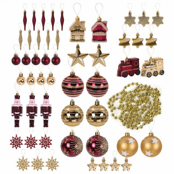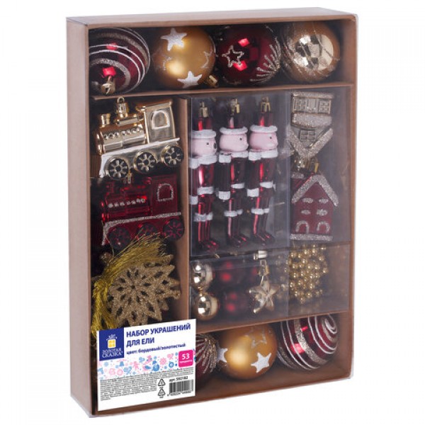 Шары ёлочные НАБОР 53 предмета, 'Gold Wine', бордовый/золото, пластик, ЗОЛОТАЯ СКАЗКА, 592182