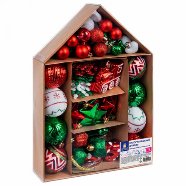 Шары ёлочные НАБОР 73 предмета, 'Fairy House', красный/зеленый/белый, пластик, ЗОЛОТАЯ СКАЗКА, 592181