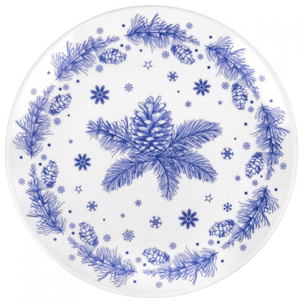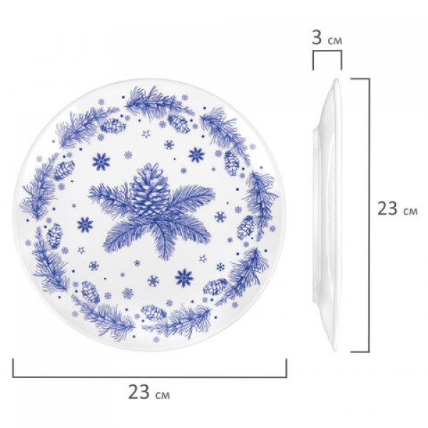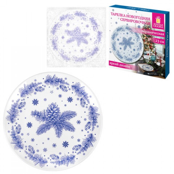 Тарелка сервировочная новогодняя 23 см, 'Еловые ветки', каменная керамика, ЗОЛОТАЯ СКАЗКА, 592548