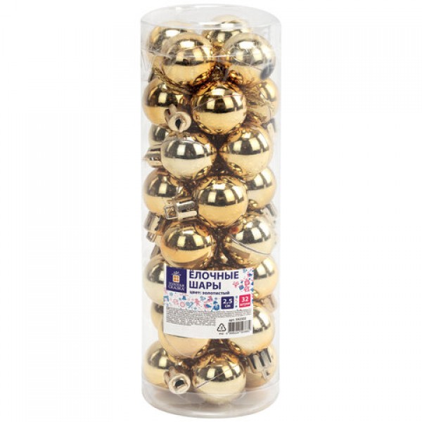 Шары ёлочные 32 шт., 2,5 см, 'Tender Shine', пластик, золотистые, глянец, ЗОЛОТАЯ СКАЗКА, 592502