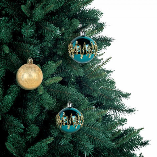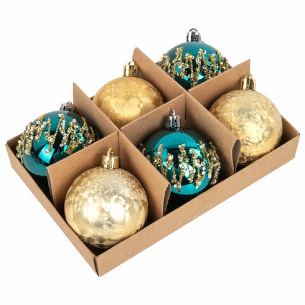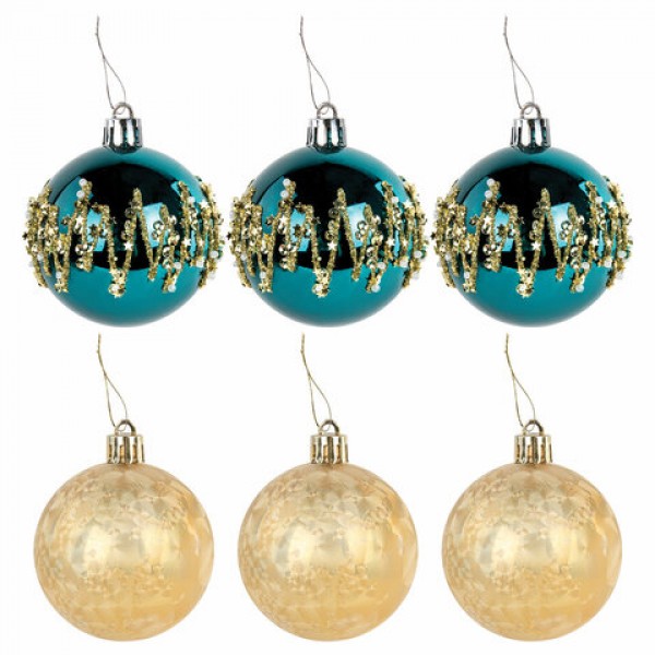 Шары ёлочные 6 шт., 6 см, 'Powder Blue', бирюзовый/золото, пластик, ЗОЛОТАЯ СКАЗКА, 592178
