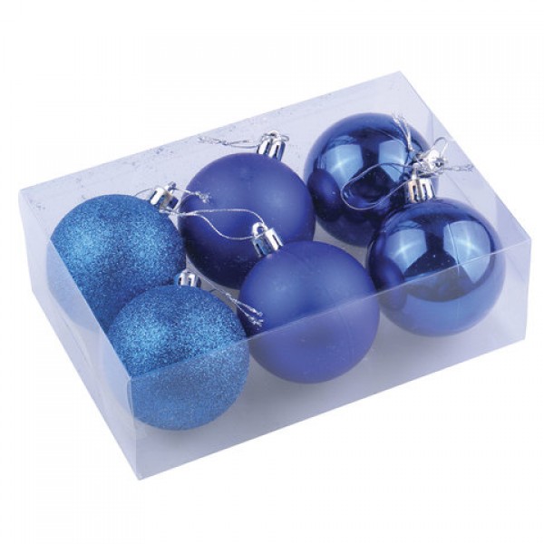 Шары ёлочные 6 шт., 6 см, 'Trio', пластик, СИНИЕ (глянец, матовый, глиттер), ЗОЛОТАЯ СКАЗКА, 590864