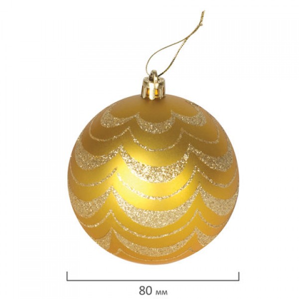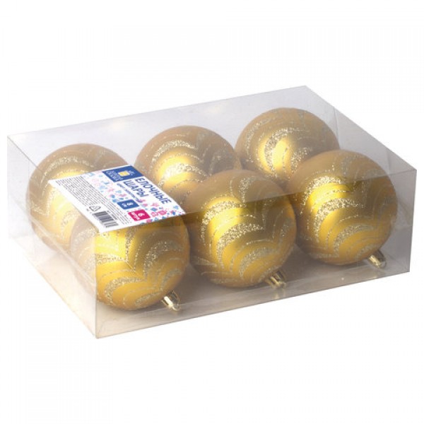 Шары ёлочные 6 шт., 8 см, 'Basic Art', пластик, золотистые матовые с узором, ЗОЛОТАЯ СКАЗКА, 590890