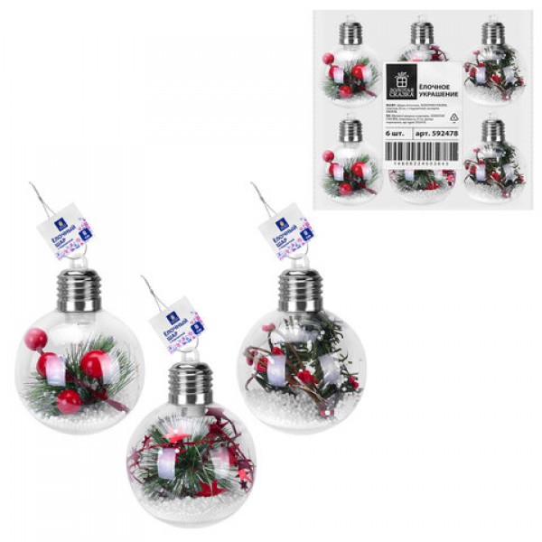 Шары ёлочные 8 см, 'Charming Winter', пластик, АССОРТИ 3 дизайна, с подсветкой, ЗОЛОТАЯ СКАЗКА, 592478